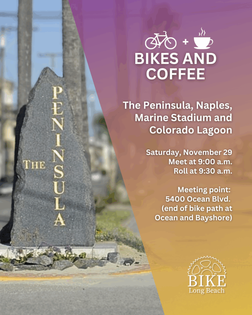 Join us this Saturday, November 29th for a chill post-turkey ride through the Peninsula, Naples, Marine Stadium, Colorado Lagoon, and Belmont Shore.